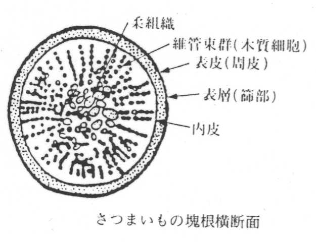 *現代の日本人の主食であり、主要な炭水化物源であるのは、精白米と精白小麦です。 図-1 a、b に示すように、米や小麦は精白の工程により外皮、内皮の部分だけではなく植物の源である胚芽の部分も除いてしまいます。 *これによりいかに栄養素が失われるかを表-1に示しました。 表-1 に示すように.精白の工程により 玄米 ⇒胚芽精米⇒精白米小麦玄殻 小麦玄殻⇒ ⇒精白薄力粉1等 と精製度が増すにつれ糖質の含有量が増えますが、それ以外の蛋白質・脂質はもちろん現代の日本人に不足しがちな食物繊維・ビタミン・ミネラルが数倍減少しています。 *小麦胚芽の成分を見れば解りますが植物の源である胚芽の部分がいかに栄養素を含むか解ります。 *主食である米・麦の精白精製により自然から離れ栄養バランスが崩れやすくなります。又、栄養バランスを整える為の献立作成が解り難く複雑になり、専門家と言われる人でも説明が難しく人により違った考えを出したりして消費者が混乱して、間違った情報が氾濫する原因と考えられます。 *米の精製度が高くなり胚芽米や表皮のビタミンBl・ミネラル類の損失が脚気の増加を引き起こしたことは栄養学の歴史では有名な話です。 (江戸時代は、江戸患いと呼ばれ原因が解りませんでした。) *いも類及びさつまいもが栄養的に優れている 図-1 C を見ても解るように、いも類は種芋を半分、4分の1にしてもしっかり芽が出て成長していきます。つまりどの部分でも生命の源である栄養素を含んでいるのです。 (芋類は、種では無く根等が次の季節に成長する為に栄養素を蓄えた塊です。) ☆芋類は細胞は多数集まっておりその1つ1つの細胞が栄養素がバランス良く含まれます。 *米類・小麦類・豆類などは1つ種が1つの細胞の塊であり、精白精製により胚芽など取り除くと著しく栄養素が失われます。 ☆いも類は、乾燥保存、精製の工程が無く生鮮のまま保存します。調理には皮を剥く程度である為ほとんど栄養素の損失が無く食用とされています 図-1 a、b、c